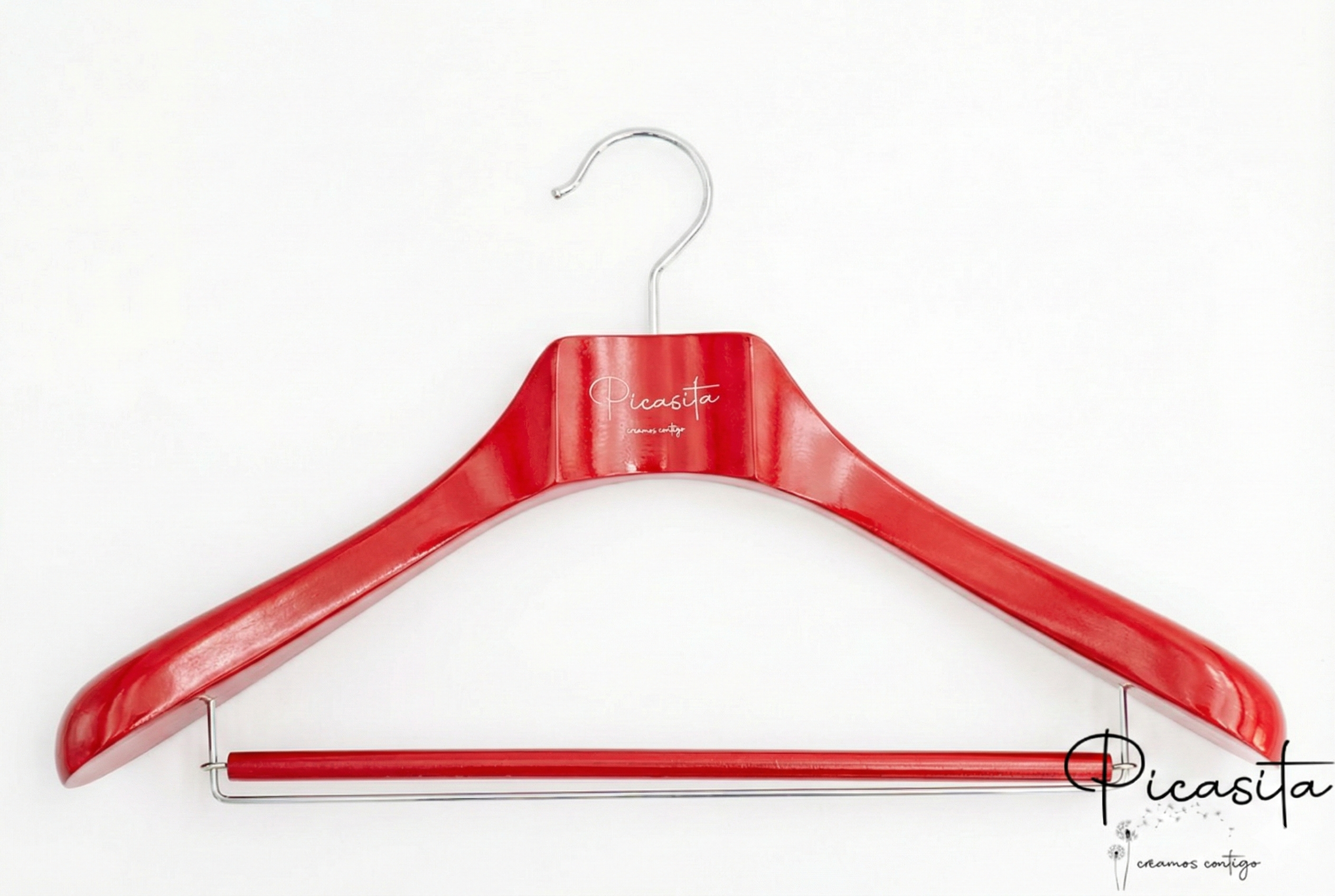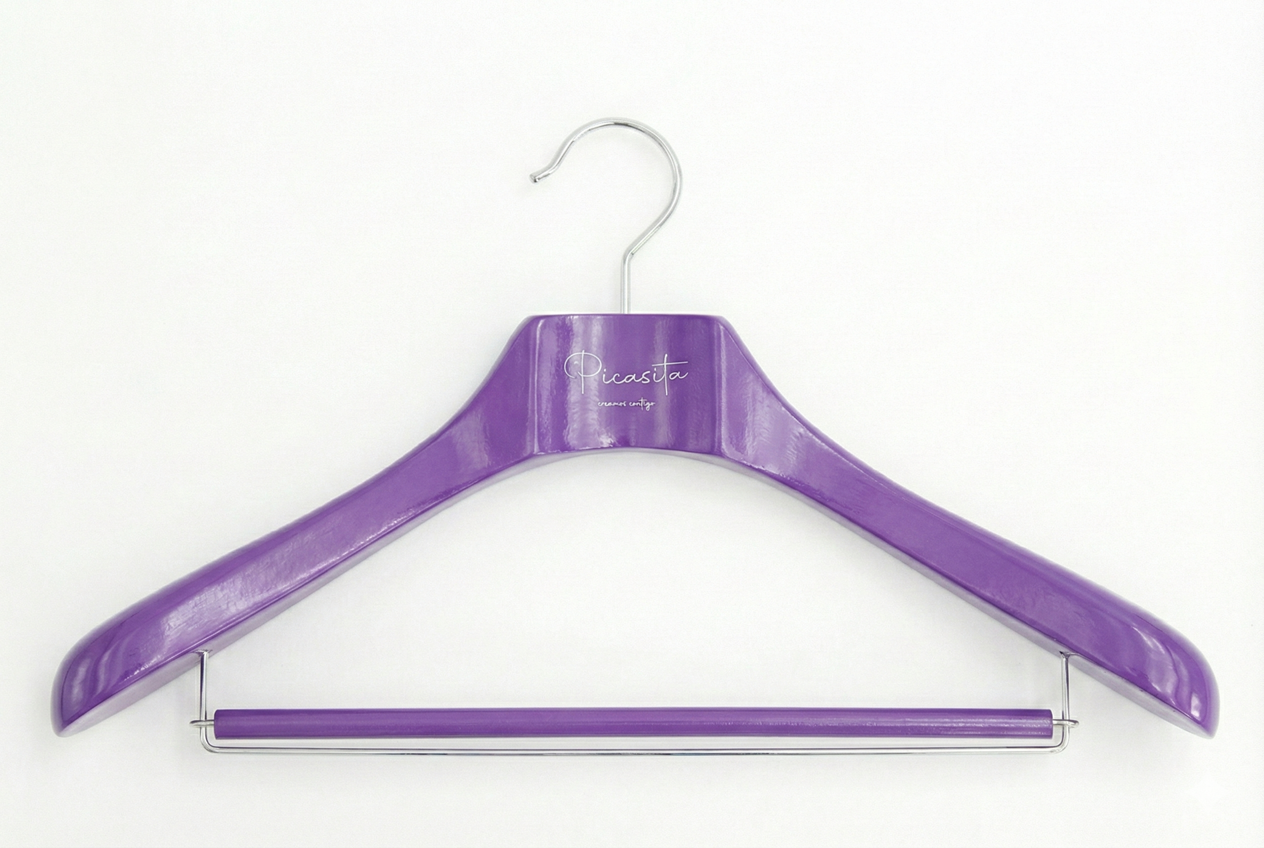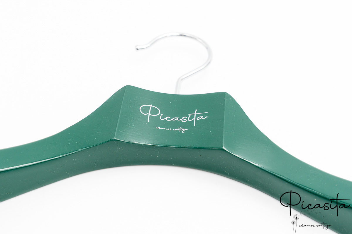 Ciò che distingue davvero le nostre grucce colorate personalizzate è la capacità di adattarle completamente al tuo marchio. Possiamo integrare il tuo logo, nome commerciale, frasi o date tramite un'incisione precisa che può essere presentata nel tono naturale del legno, in argento o in un altro colore a contrasto. È la soluzione ideale per rafforzare la tua immagine aziendale in ogni angolo del negozio.