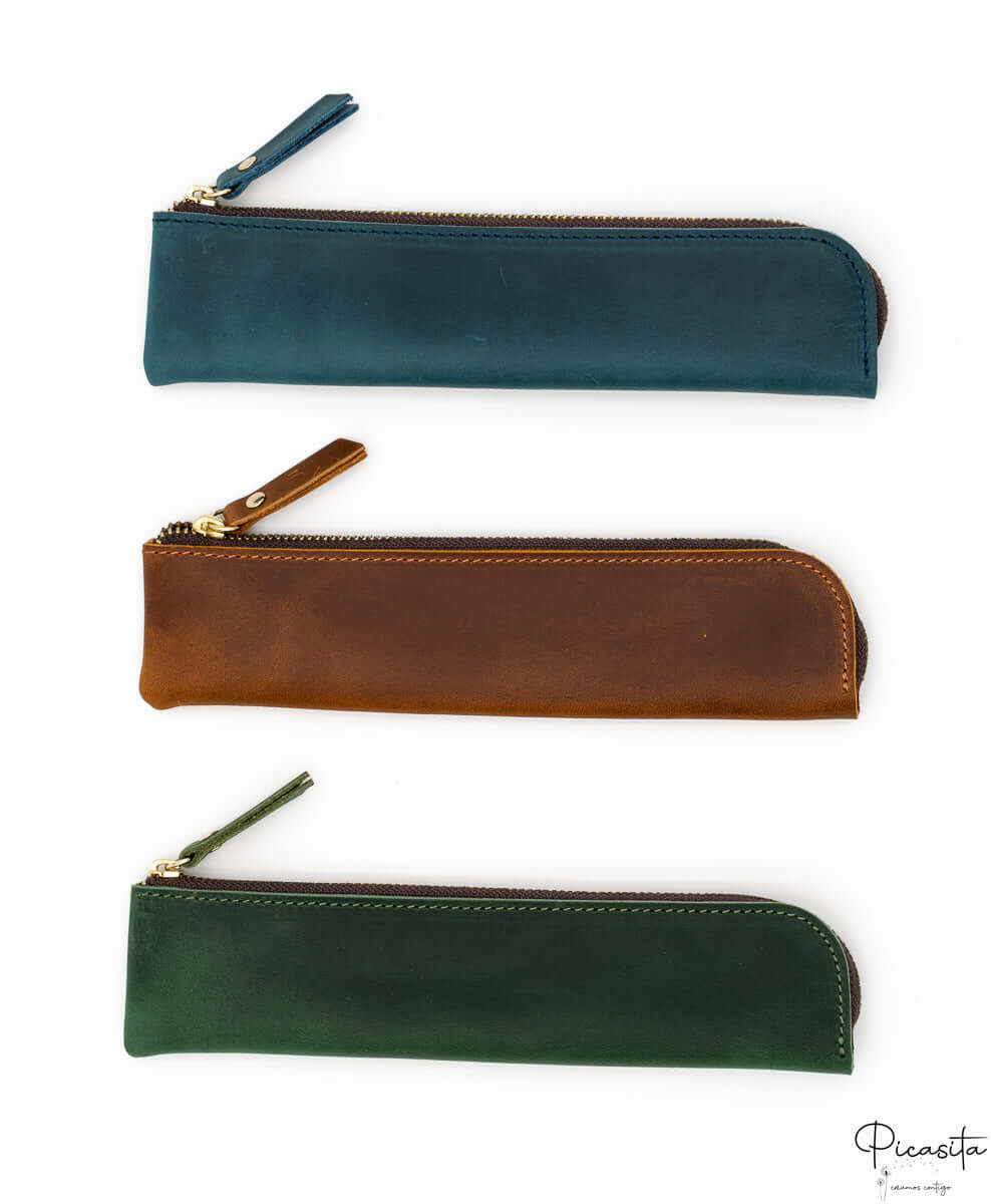 Questo non è un semplice portapenne; è un astuccio elegante disponibile in una gamma di colori selezionati per adattarsi a qualsiasi stile: Blu profondo, Beige crema, Marrone scuro classico, Marrone chiaro naturale e Verde bosco. Il suo profilo stretto, le cuciture rinforzate tono su tono e la cerniera metallica con tirante in stile pelle assicurano che i tuoi strumenti siano protetti con il massimo stile.