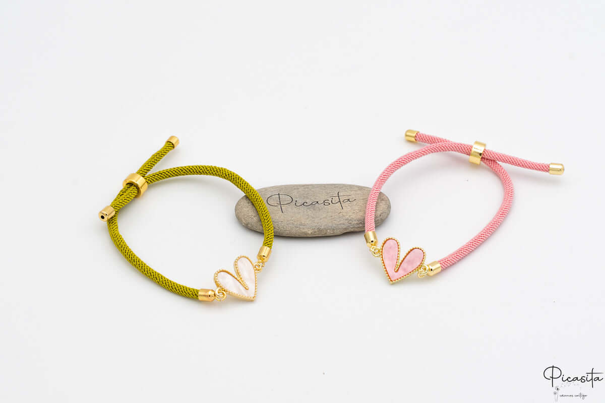 Un Cuore Pieno di Colore e Brillantezza L'elemento centrale di questo braccialetto è un delicato charm a forma di cuore. Presenta un elegante contorno metallico in tono dorato che incornicia un riempimento in smalto o resina di colore vibrante (disponibile in opzioni come bianco puro, rosa dolce e altre tonalità abbinate al cordoncino). Questo cuore non è solo un ornamento, è una piccola dichiarazione d'affetto.