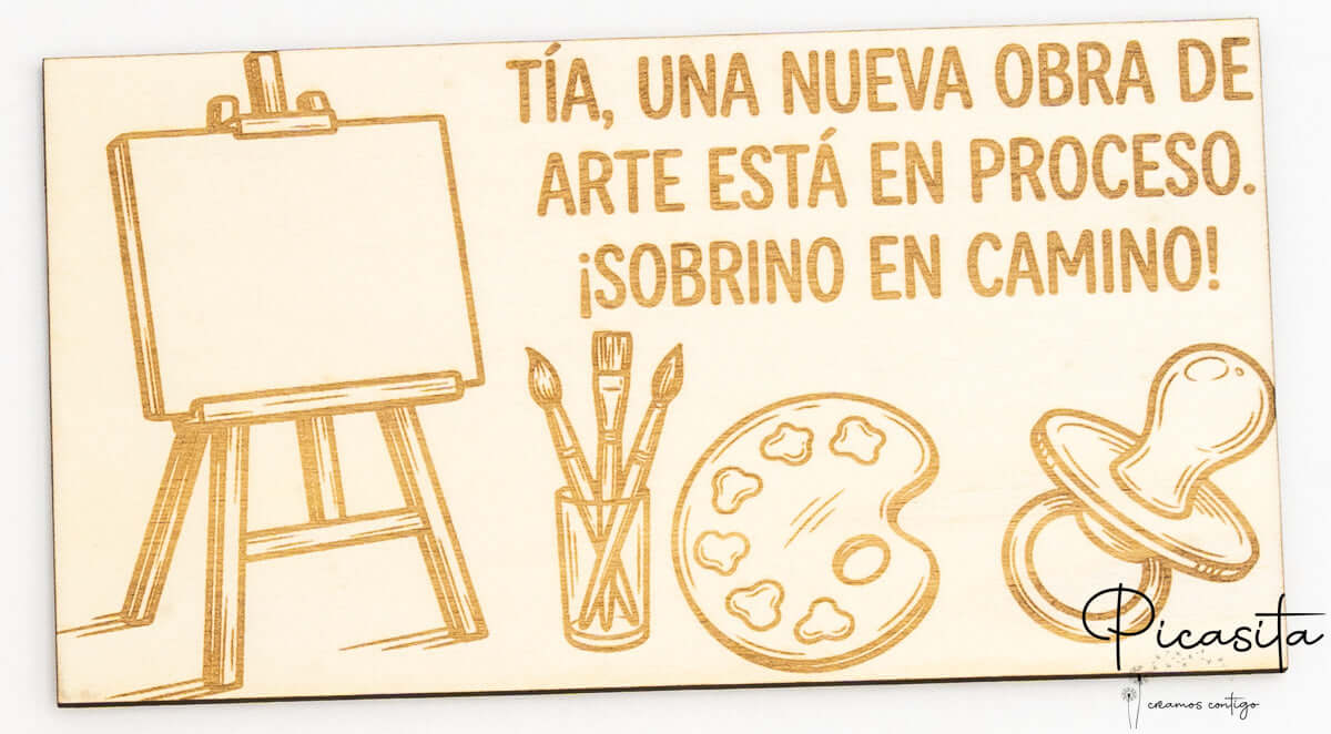 La famiglia cresce e ogni nuovo ruolo è fondamentale nella vita del bambino. Per questo abbiamo creato varianti specifiche per poter dare la grande notizia. Immagina la faccia di tuo fratello quando legge "vas a ser tio" accanto a un divertente design di squadra sportiva, o l’immensa emozione di tua sorella nel scoprire il messaggio "vas a ser tia" accompagnato da elementi artistici. Questo cartello annuncio gravidanza non è solo un pezzo di legno; è una capsula del tempo che custodirà l’istante esatto in cui le loro vite sono cambiate per riempirsi di più amore.