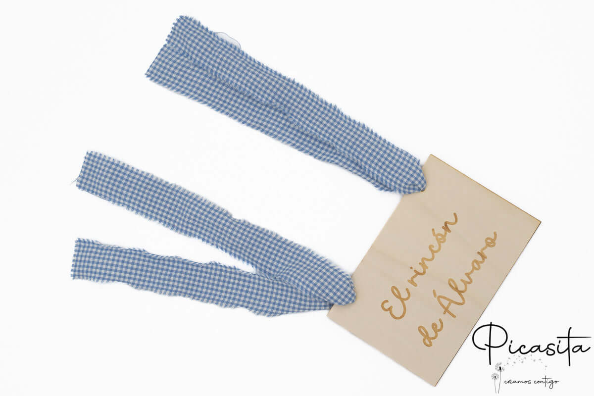Questo cartello è pensato appositamente per essere appeso alla sedia preferita del bambino nel suo angolo giochi, o direttamente sulla parete. Include un tessuto tagliato, a mo' di nastro, con stampe allegre che completano l'estetica del cartello e ne facilitano il posizionamento. Il messaggio "L'Angolo di