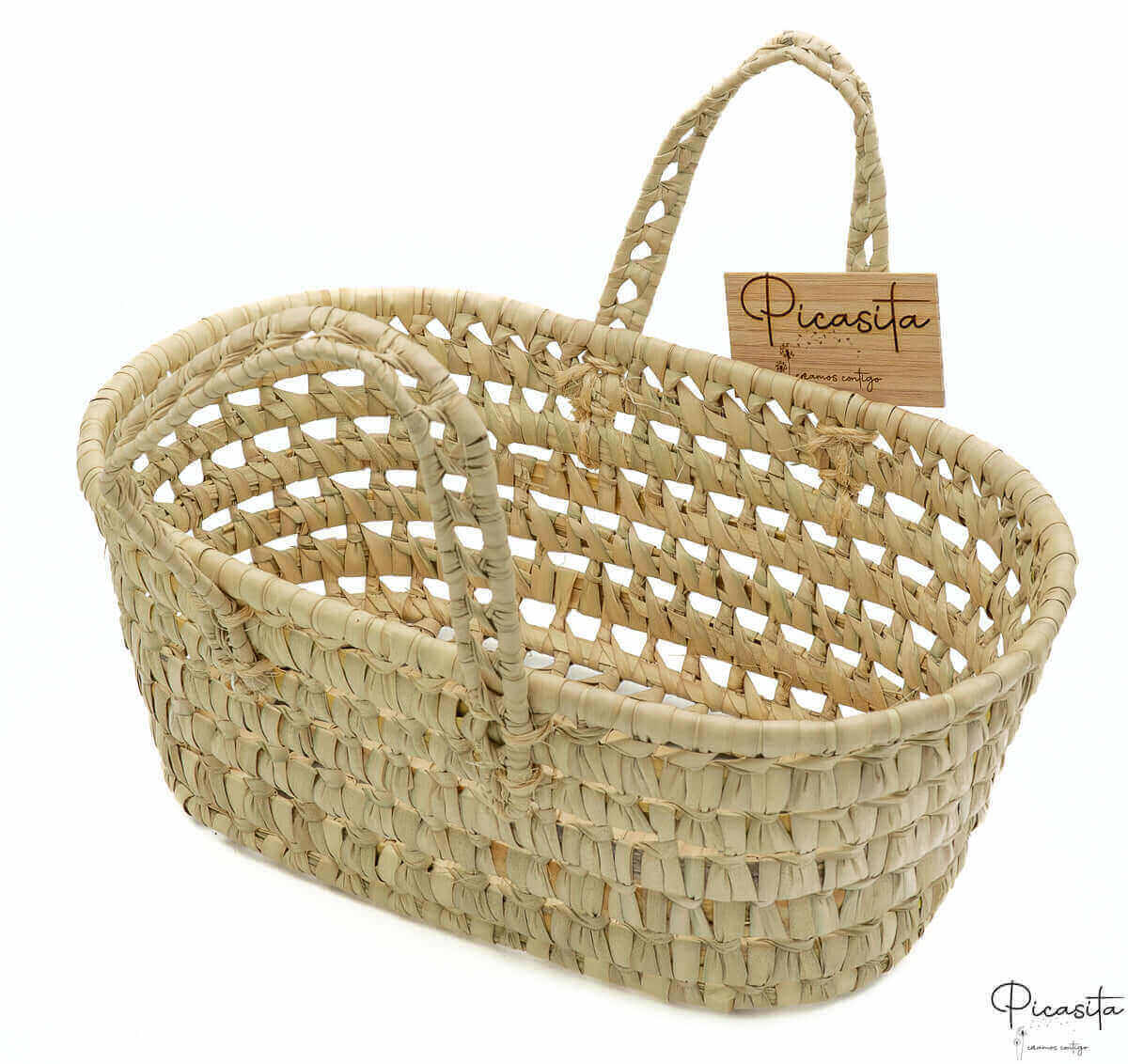 • 🌿 Materiales naturales: Hoja de palma artesanal y madera de haya