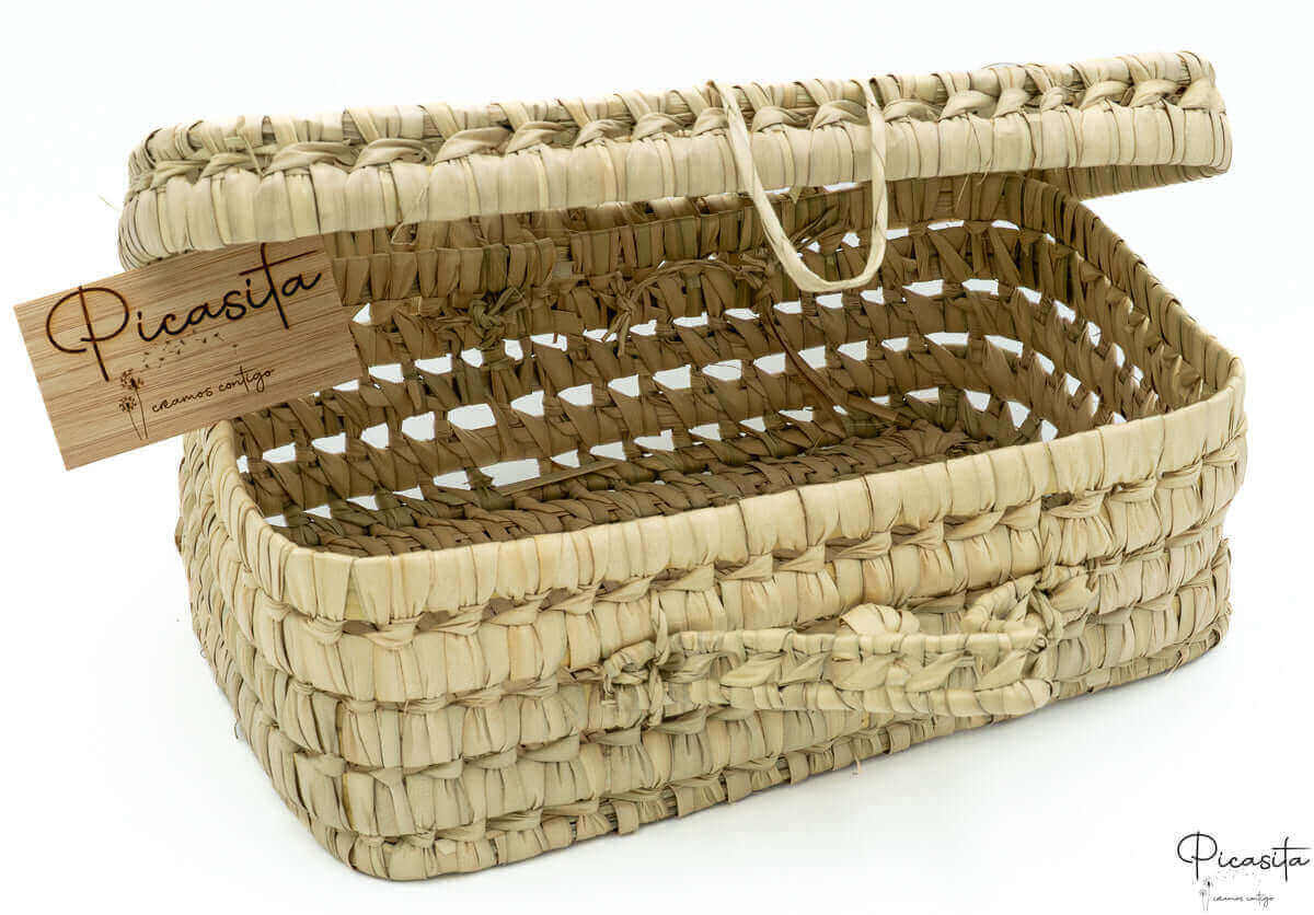 Cesta Artigianale: Grande cesta realizzata a mano con foglia di palma naturale.