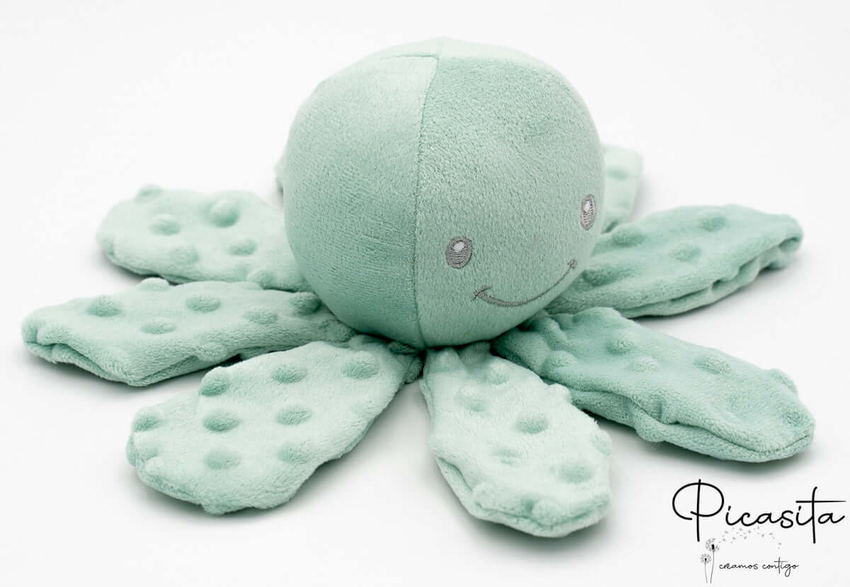 Da Picasita diamo priorità alla sicurezza dei più vulnerabili. Questo dou dou polpo è realizzato con tessuti sintetici di alta qualità, estremamente morbidi al tatto e resistenti. È importante sottolineare che questo modello non include personalizzazione. Essendo un prodotto standard, garantiamo che tutti gli elementi decorativi, come gli occhi e il sorriso, sono completamente ricamati, eliminando qualsiasi rischio di piccole parti che possano staccarsi.