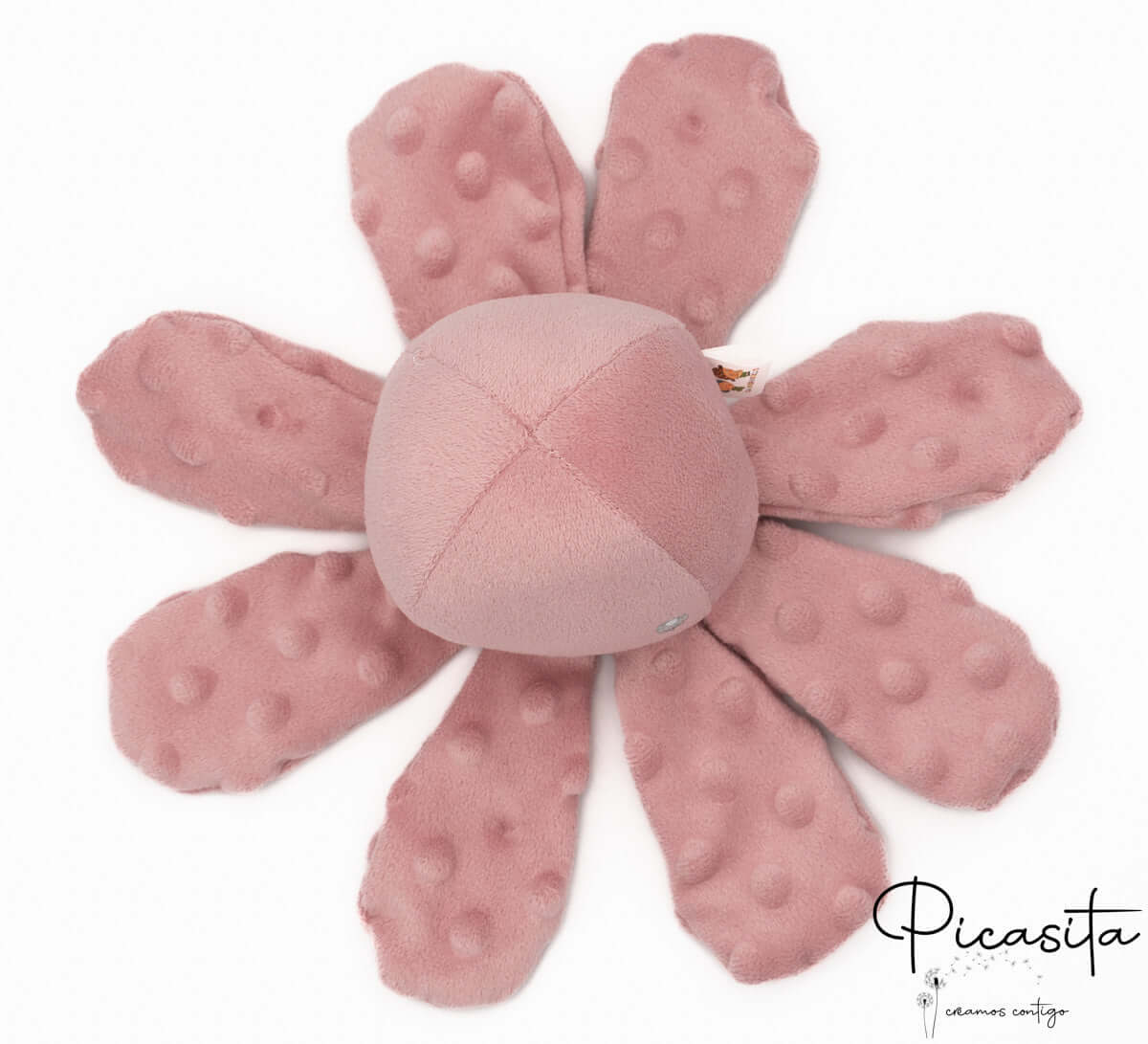 Questo polpo è stato creato pensando allo sviluppo dei sensi. Il suo corpo e le sue otto divertenti zampette presentano una texture a pallini (minky dots) in rilievo, che offre un'esperienza tattile unica, invitando il bambino a esplorare con le mani e migliorare la motricità fine.