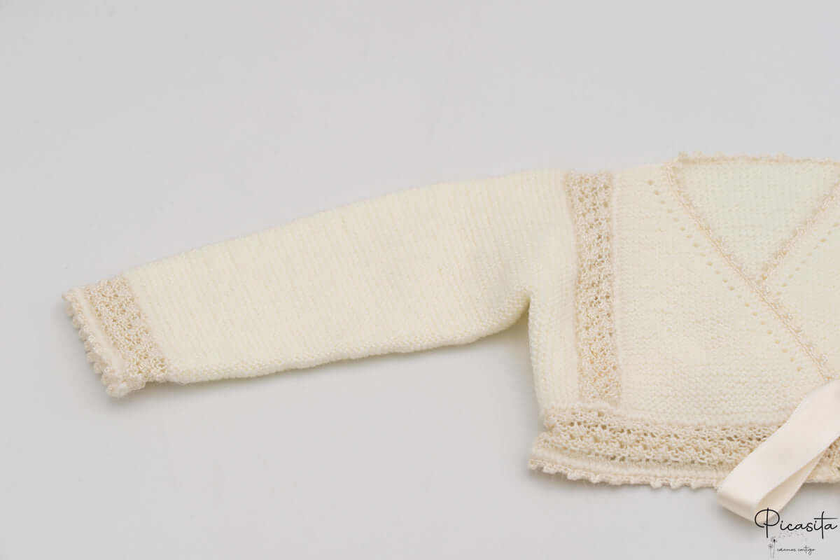 Su Picasita.es, comprendiamo che il primo abbigliamento di un figlio è un momento indimenticabile. Per questo, questa giacca per neonato non è semplicemente un capo di abbigliamento; è un'opera d'arte tessuta con il cuore. Ogni giacca di lana per neonati che vedi nel nostro negozio è il risultato di decenni di tradizione: sono realizzate a mano in Spagna da mia madre, che ha imparato il mestiere da mia nonna. Questa eredità familiare garantisce che tu riceva un capo esclusivo che non troverai in nessun altro negozio fisico o piattaforma online.