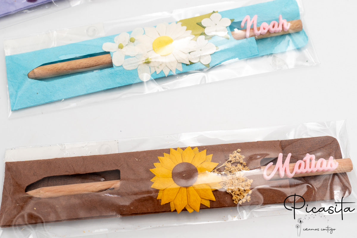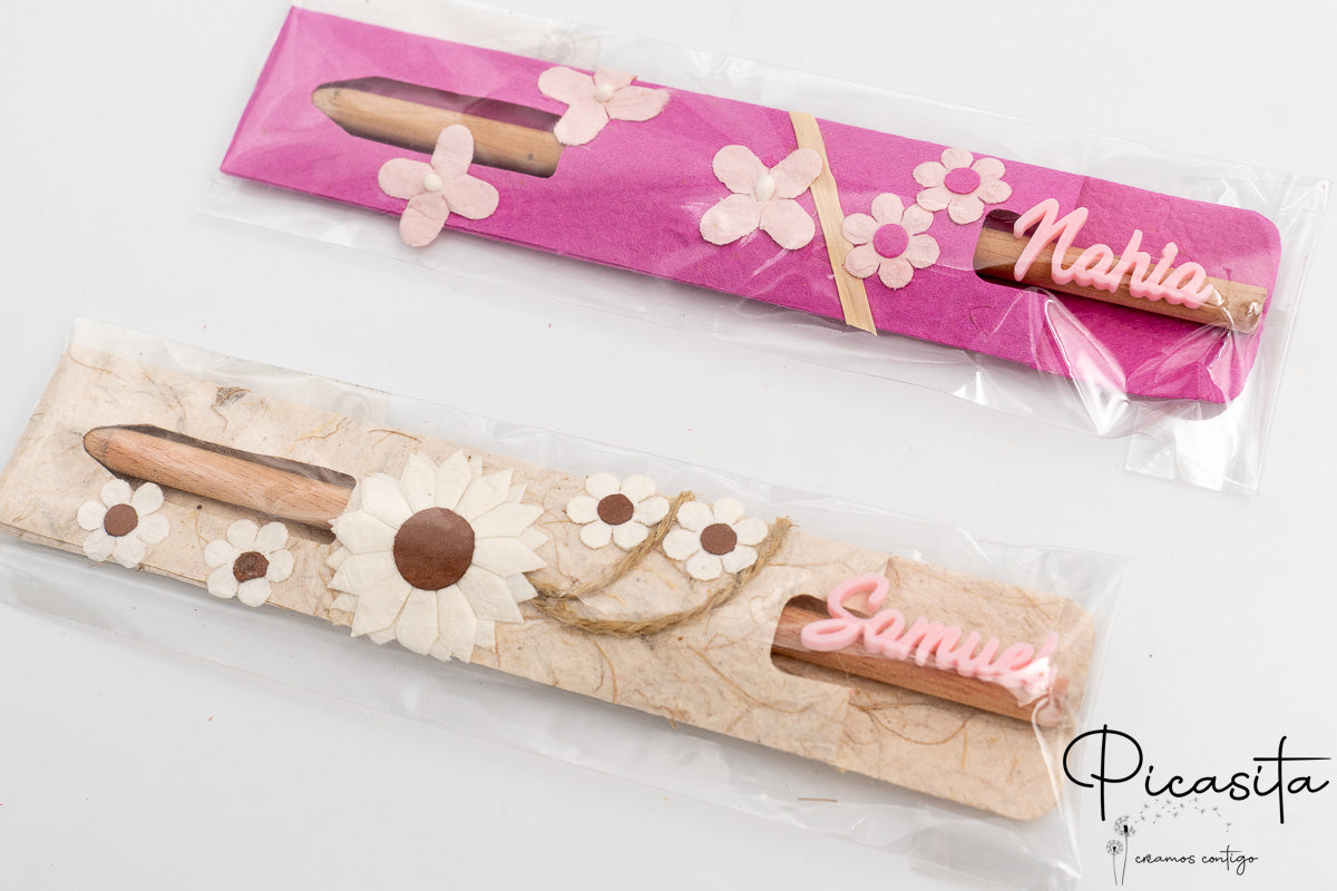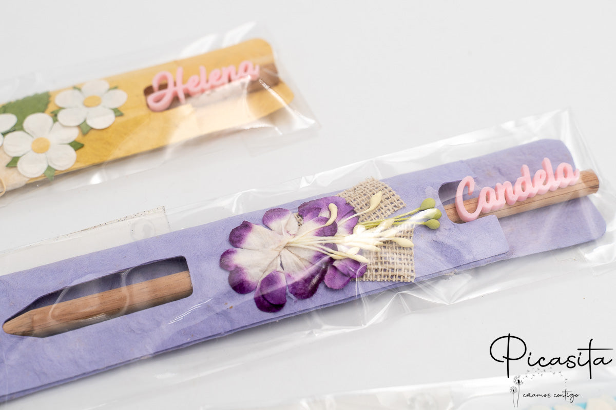 Porque combina la utilidad de un lápiz escolar con una presentación artesanal y totalmente exclusiva gracias al nombre en 3D. Es un detalle práctico que los invitados usarán y recordarán con cariño. ✨