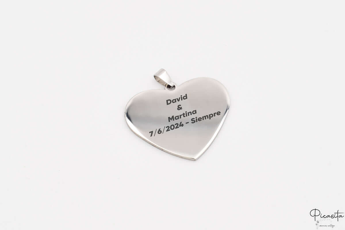 La nostra medaglia è interamente realizzata in acciaio inox, materiale scelto per la sua resistenza alla corrosione e la sua lucentezza eterna. Tramite tecnologia laser, incidiamo con precisione nomi, date chiave o monogrammi. È importante sottolineare che non include la catena o il cordino, dandoti totale libertà di usarla su collane, portachiavi o come complemento di un altro dettaglio speciale.