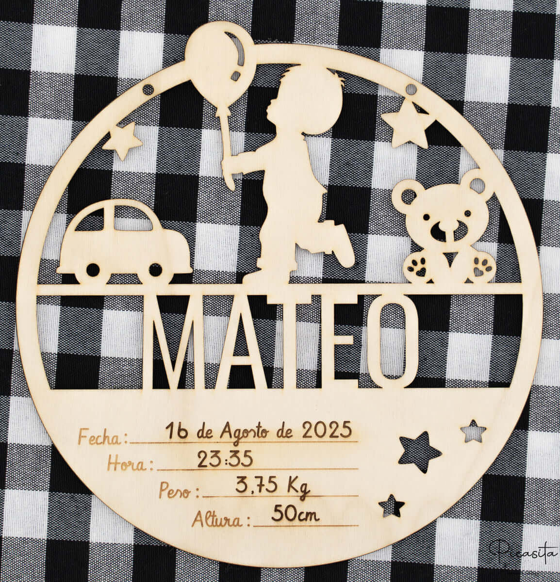 Il nostro natalizio legno è realizzato con cura in compensato di alta qualità, selezionato per il suo calore e la sua venatura naturale che rende ogni pezzo unico. Con un diametro di 20 cm e uno spessore di 0,2 cm, questo natalizio bambino offre la leggerezza necessaria per essere appeso in modo sicuro a qualsiasi parete della cameretta, senza perdere la robustezza di un prodotto ben fatto. Essendo un materiale organico, apporta una sensazione di calma e benessere all'ambiente del neonato, integrandosi perfettamente con la nostra collezione di Accessori Bebè.