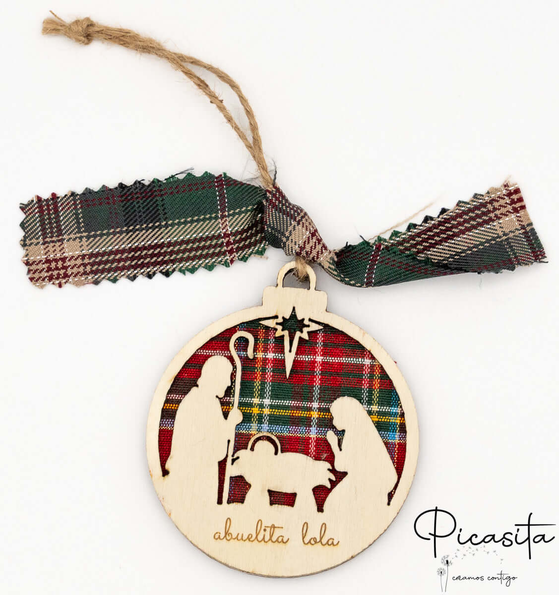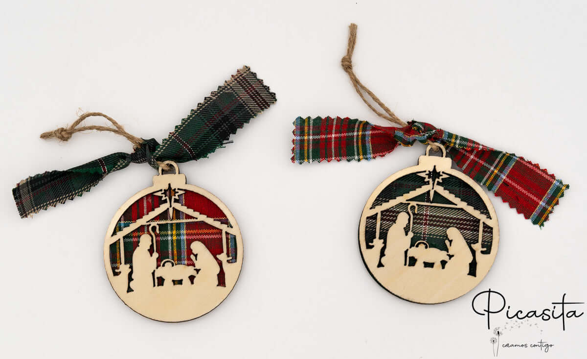 Su Picasita.es, comprendiamo che il Natale è un periodo di tradizioni che meritano di essere ricordate con pezzi speciali. Le nostre palline di Natale personalizzate non sono semplici decorazioni; sono piccole opere d'arte realizzate con una tecnica artigianale di sovrapposizione di tre strati. Due strati di compensato di alta qualità abbracciano un cuore di tessuto a quadri scozzesi (plaid), creando un rilievo tridimensionale che dona calore, texture e profondità a qualsiasi albero di Natale.