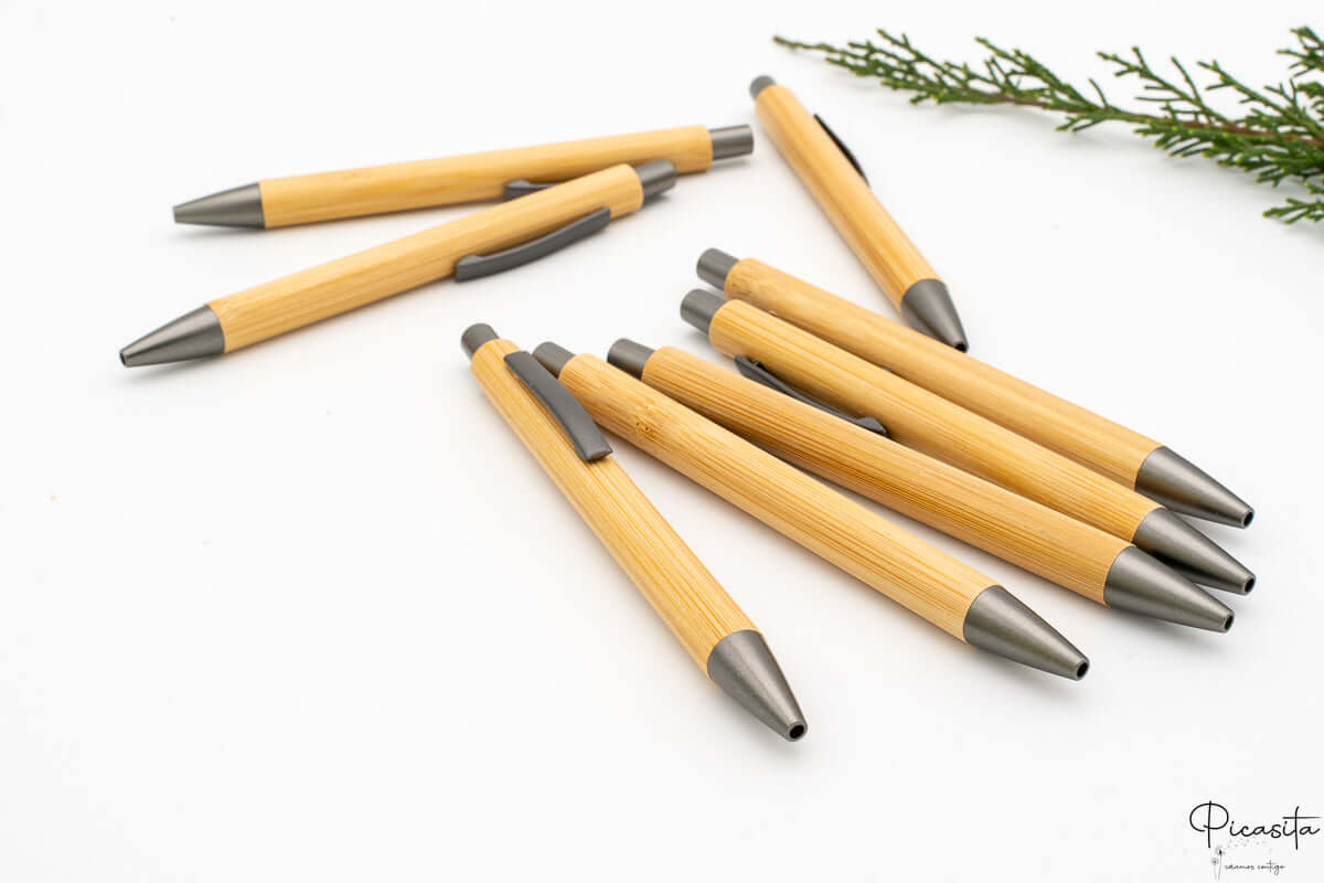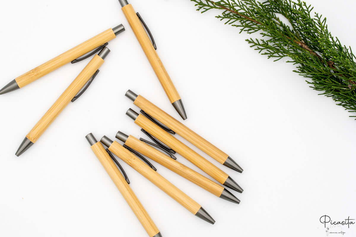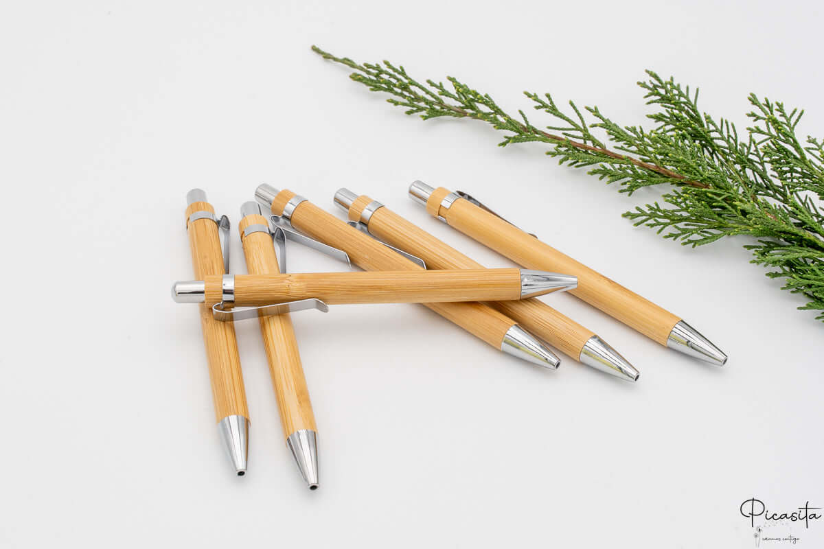 Da Picasita crediamo che la semplicità sia la chiave dell'eleganza. La nostra penna personalizzata realizzata in legno di bambù è molto più di un accessorio per scrivere; è un dettaglio sostenibile che riflette cura e attenzione ai particolari. Con un corpo in legno naturale e una clip metallica robusta, questa penna per invitati diventa il ricordo perfetto per ogni tipo di celebrazione.