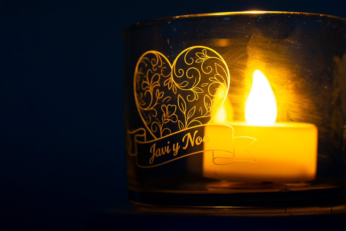 Sia per un dettaglio decorativo per matrimoni sia per dare un tocco intimo alla tua cena a casa, questo portacandela personalizzato medio garantisce durata e uno stile che non passa mai di moda. Essendo un portacandela in vetro colorato con incisione permanente, potrai usarlo e lavarlo tutte le volte che vuoi senza paura che il design scompaia.