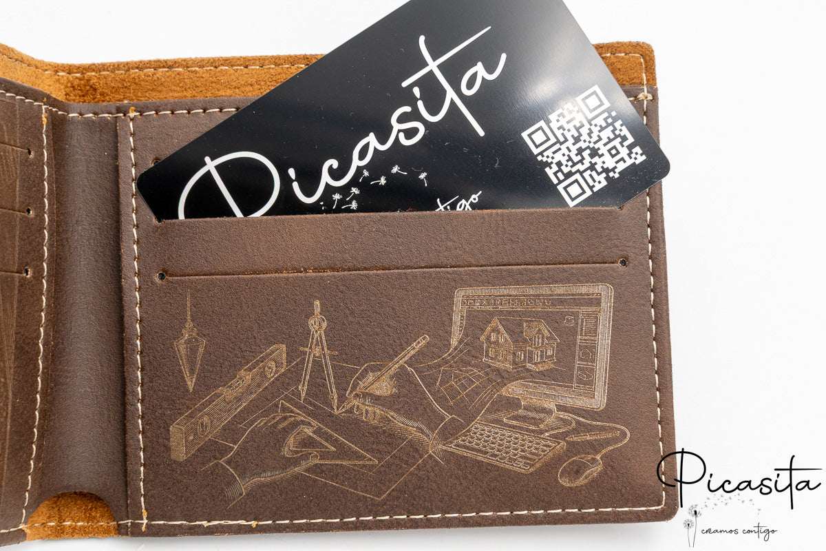 La vera magia di questo portafoglio personalizzato risiede nella sua capacità di personalizzazione. Utilizziamo un laser ad alta precisione per effettuare una bruciatura superficiale sul materiale, ottenendo una tonalità scura, elegante e permanente. Dimentica i portafogli da uomo noiosi; qui puoi incidere nomi, date importanti, iniziali o disegni a tratto semplice (come quelli delle foto di esempio). Non utilizzando inchiostri, il design su questo portafoglio personalizzato non si cancella con lo sfregamento in tasca né con il passare del tempo.