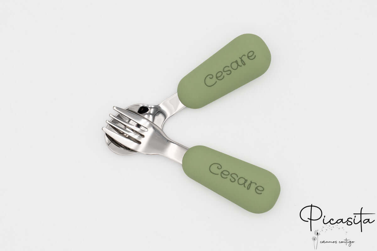 Da Picasita.it sappiamo che i dettagli fanno la differenza. Per questo ti offriamo la possibilità di creare una posata neonato personalizzata unica. Attraverso la nostra tecnica di incisione laser ad alta precisione, possiamo includere il nome del tuo piccolo o un simpatico animaletto sui manici in silicone. Il risultato è una finitura monocromatica in tono grigio scuro/bruciato che è elegante, permanente e totalmente sicura.