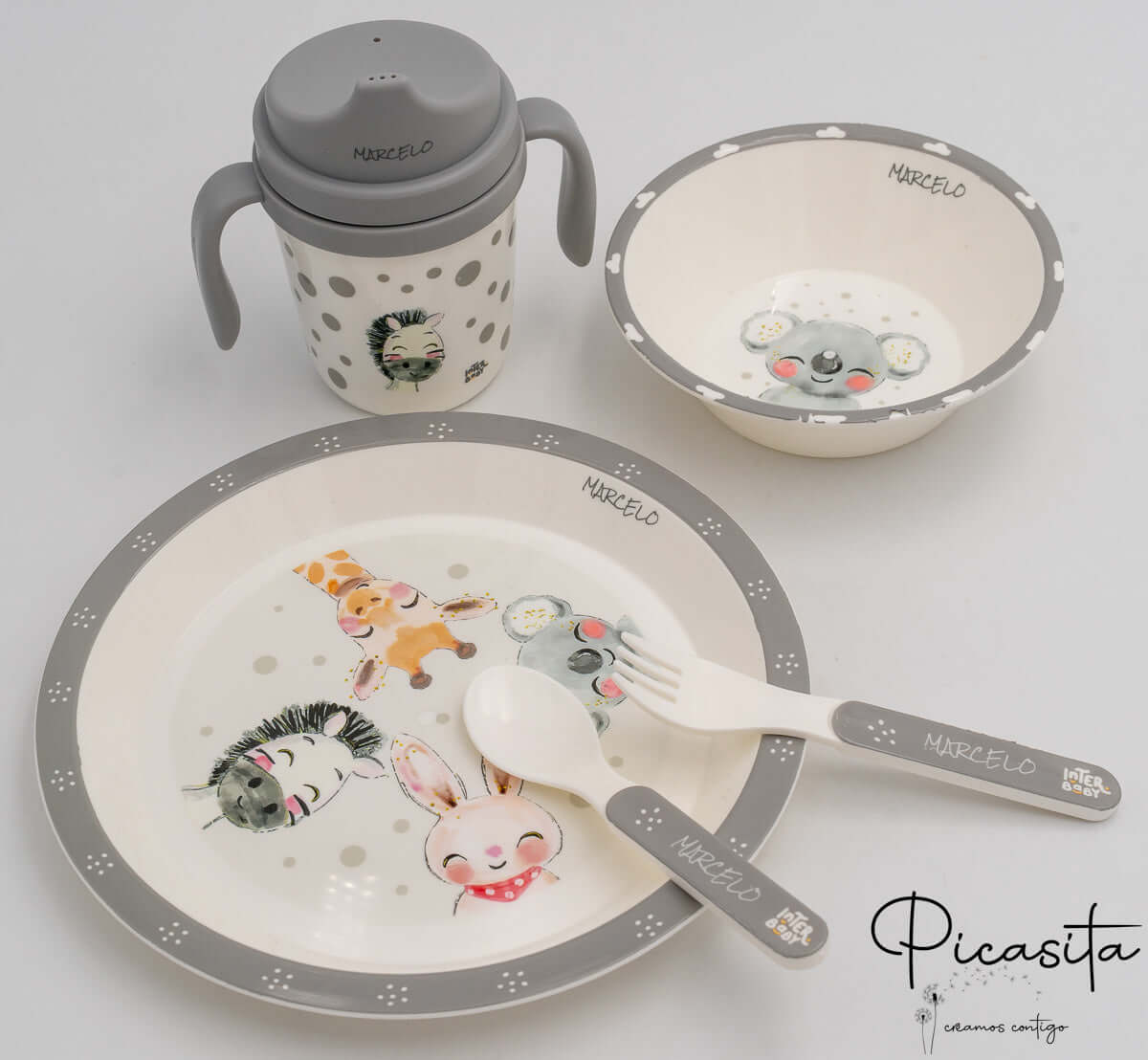 Il momento di introdurre alimenti solidi è una tappa emozionante nella vita di ogni famiglia. Per accompagnare questa fase così speciale con totale sicurezza e stile, da Picasita abbiamo selezionato la stoviglia per bambini definitiva del rinomato marchio spagnolo Interbaby. Progettata meticolosamente per adattarsi alle manine più piccole, questa stoviglia per bebè non solo facilita l’apprendimento e l’autonomia a tavola, ma trasforma ogni pasto in un’avventura divertente grazie ai suoi adorabili disegni di animaletti come koala, elefanti e giraffe.