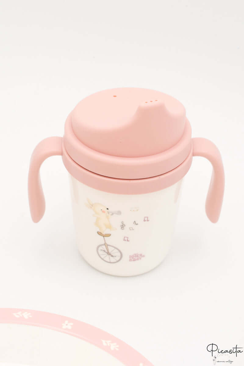 Bicchiere da apprendimento: Dotato di due manici laterali ergonomici per una presa salda e un coperchio con beccuccio che facilita la transizione dal biberon al bicchiere aperto.