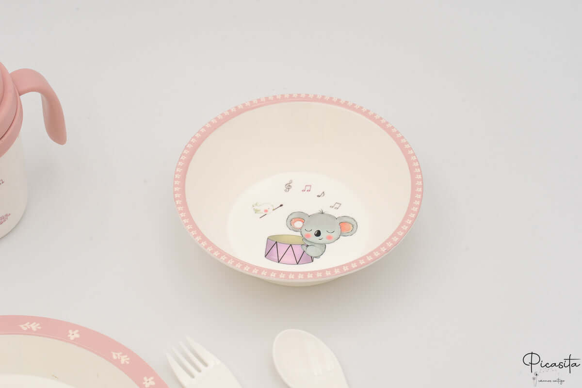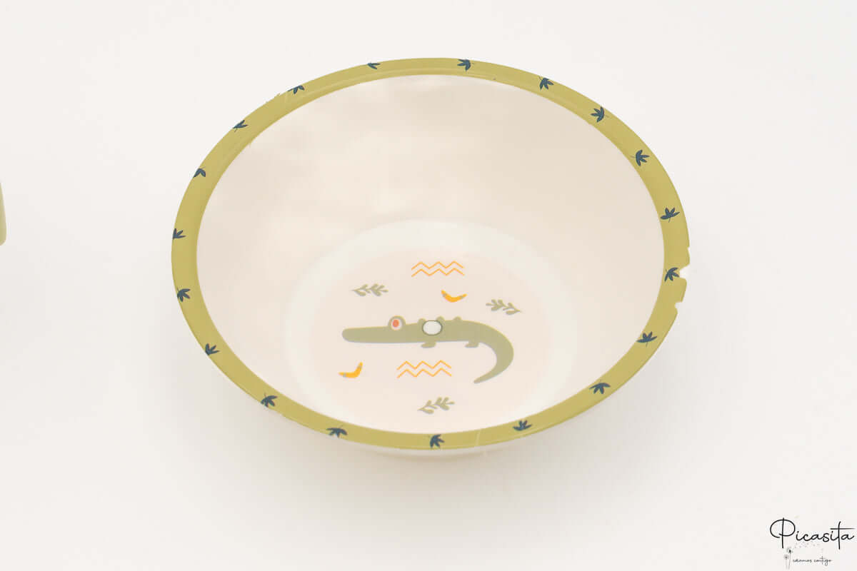 Piatto piano e Ciotola: Con dimensioni ideali per porzioni infantili e bordi arrotondati che aiutano a raccogliere facilmente il cibo.