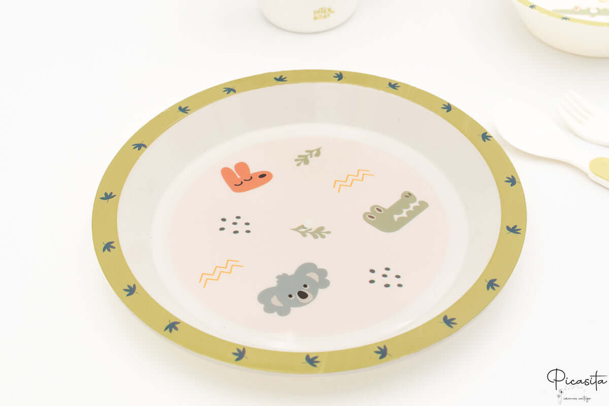 Questo set di piatti per bambini è stato pensato per adattarsi alle manine piccole e alle capacità motorie in sviluppo dei bambini. Il set include: