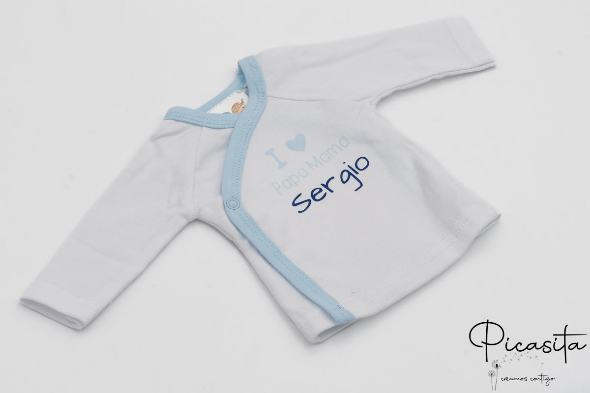 Per questo completo primo abbigliamento personalizzato è necessario indicare il nome. Se non lo sai, ti consigliamo di scegliere altri modelli della nostra collezione che non richiedono personalizzazione.