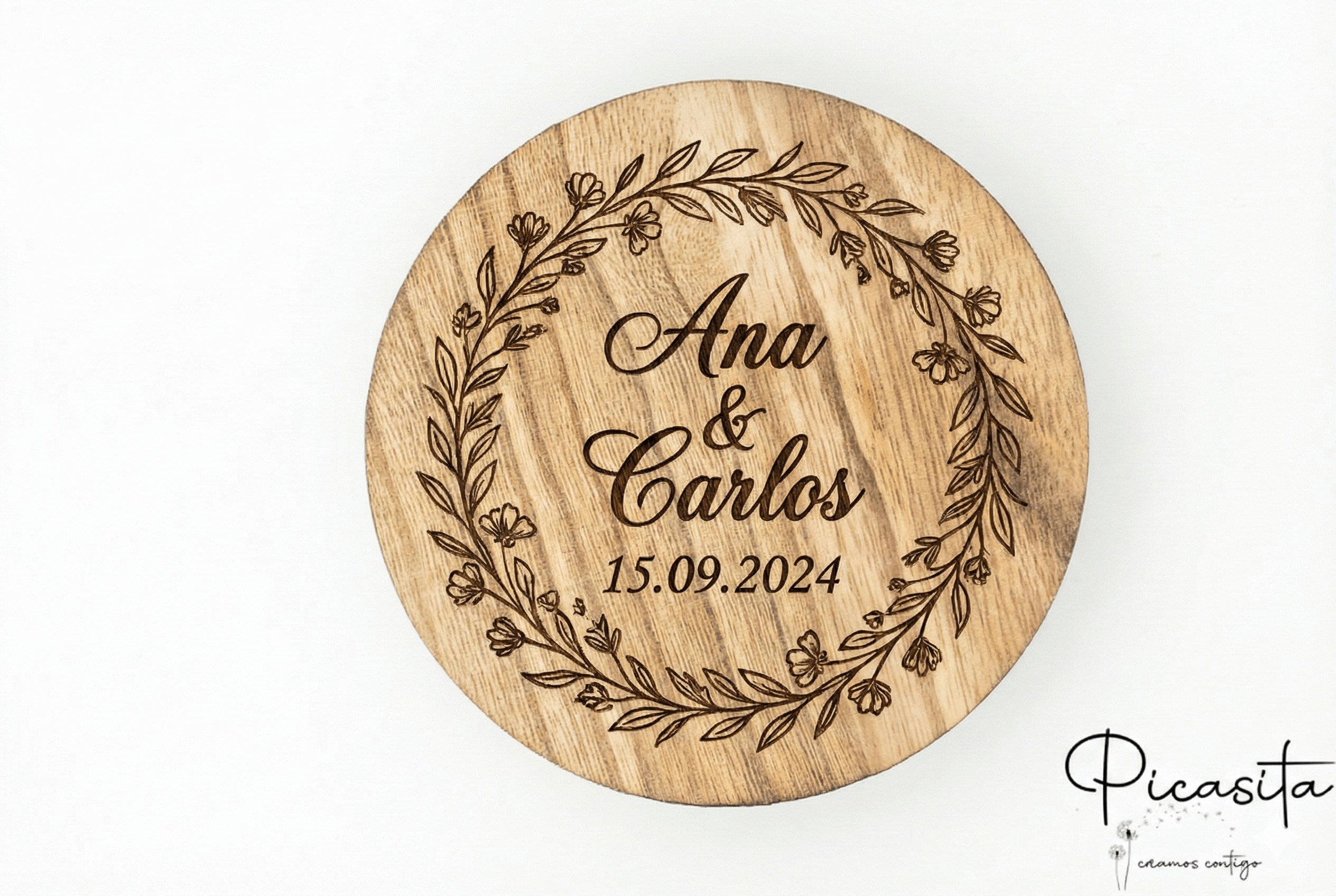 Sappiamo che i ricordi migliori sono quelli che portano la tua essenza e durano nel tempo. Per questo, questa tovaglietta in legno diventa un pezzo esclusivo personalizzandola con una precisa incisione laser. Questa tecnica lascia un segno permanente ed elegante in tonalità tostata, ideale per riportare il nome degli sposi e la data del matrimonio, circondati da delicate corone floreali o tipografie romantiche. Questo livello di dettaglio non solo lo rende un espositore per matrimoni funzionale per il giorno dell’evento, ma anche un ricordo nostalgico e indelebile che potrai conservare a casa per sempre. Esplora tutto ciò che possiamo offrirti in Il Nostro Negozio e fai brillare la tua celebrazione con luce propria.