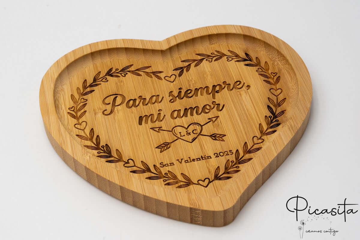 In picasita sappiamo che i dettagli fanno la differenza in casa. Per questo presentiamo la nostra esclusiva tavola da taglio personalizzata in bambù, un accessorio da cucina che unisce funzionalità ed emozione. Che tu stia cercando un regalo originale san valentin o un dettaglio unico per un amante degli animali, le nostre varianti a forma di cuore e di gatto sono la soluzione perfetta. Questa non è una semplice tavola di legno; è una tavola per salumi personalizzata progettata per creare momenti indimenticabili intorno al tavolo.