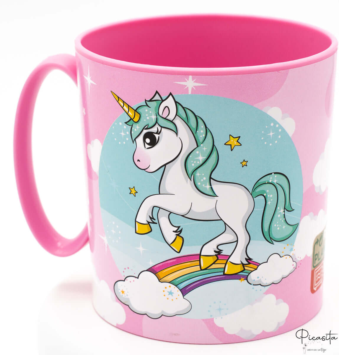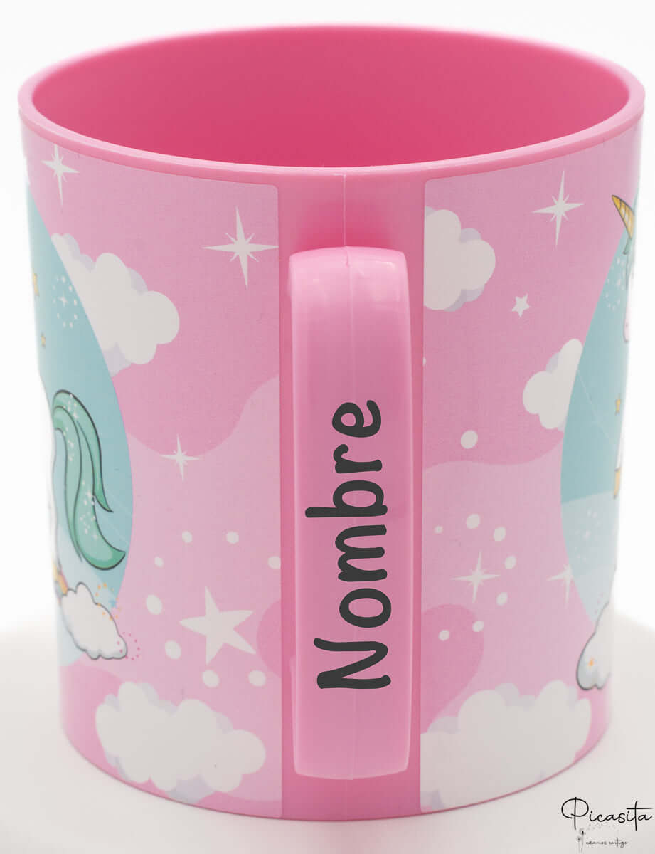Stanco che gli utensili del tuo piccolo si perdano o si confondano in classe? Scopri su picasita la soluzione definitiva a questo problema così comune. La nostra tazza unicorno personalizzata è il regalo ideale che unisce la fantasia visiva che i bambini adorano con la tranquillità e la praticità di cui i genitori hanno bisogno. Con un design magico in tonalità rosa, stelle e nuvole, renderà l’ora della colazione o della merenda il suo momento preferito della giornata.