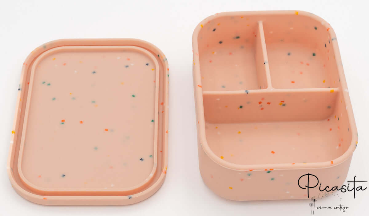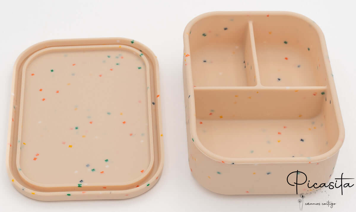 Il principale vantaggio di questo modello è che è un contenitore con scomparti (3 divisioni interne) che permette di separare gli alimenti senza che si mescolino sapori o consistenze. È la soluzione perfetta per portare un piatto principale e due contorni, mantenendo la freschezza di ogni ingrediente in modo indipendente. Questo design lo rende un pezzo essenziale della tua stoviglieria personalizzata per tutti i giorni, permettendo che la frutta non inumidisca il panino o che gli snack rimangano croccanti.