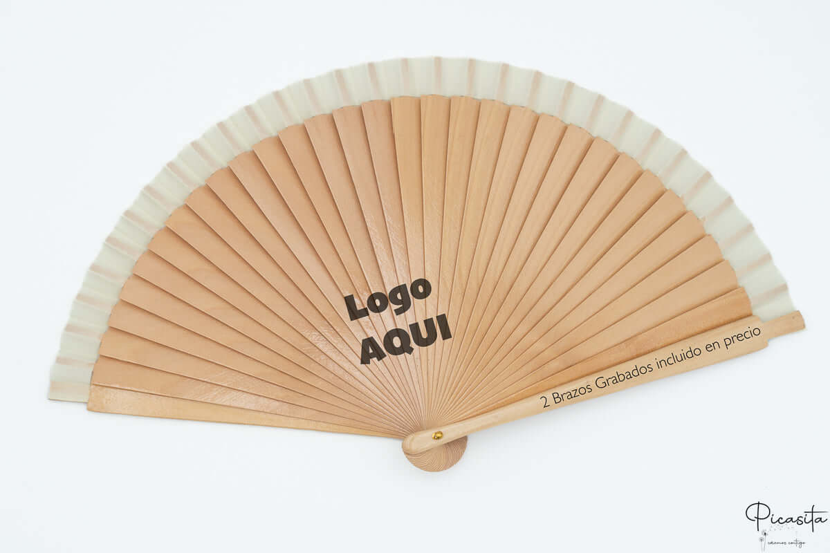 Creiamo ventagli personalizzati utilizzando la tecnica del LASER AD ALTA PRECISIONE. Questo metodo garantisce un'incisione monocromatica con un elegante tono grigio scuro che non si cancella con il passare del tempo né con l'uso intensivo. Possiamo incidere il braccio anteriore, quello posteriore e persino la zona centrale delle stecche con il tuo logo aziendale o messaggio. Essendo ventagli personalizzati lavorati in sole 24-48 ore lavorative, sono la soluzione ideale per ordini dell'ultimo minuto.