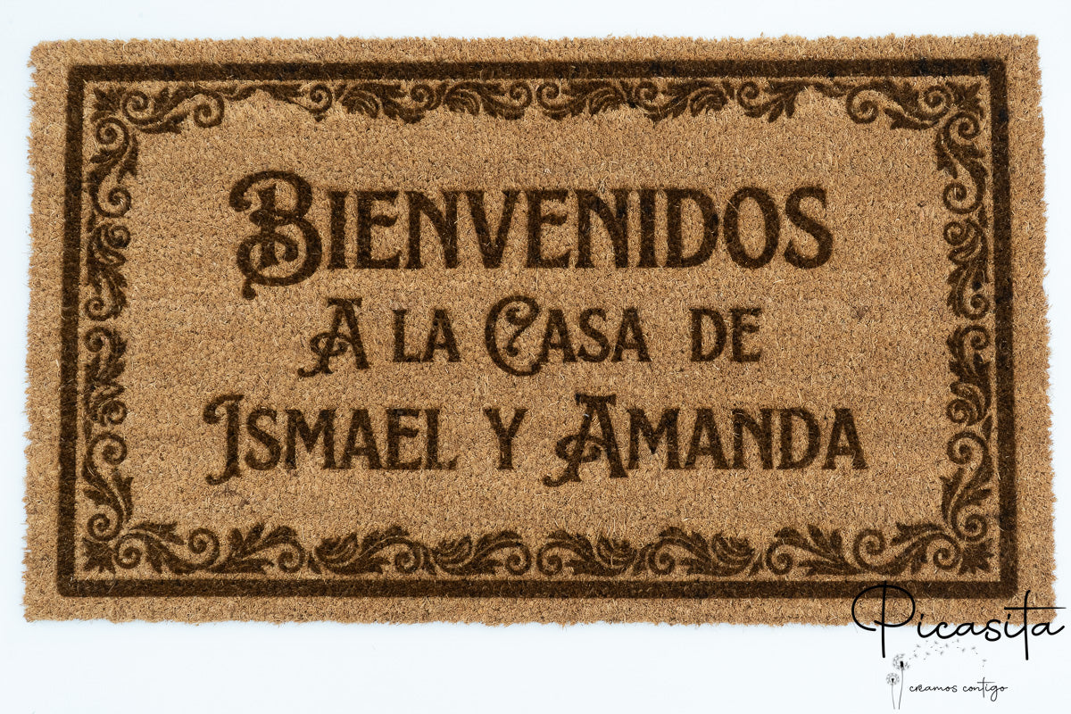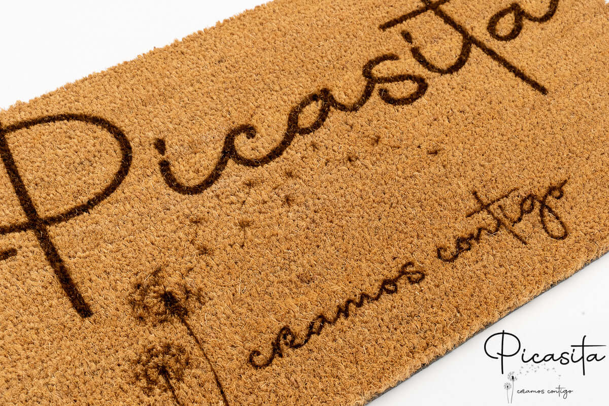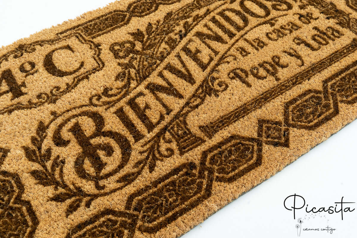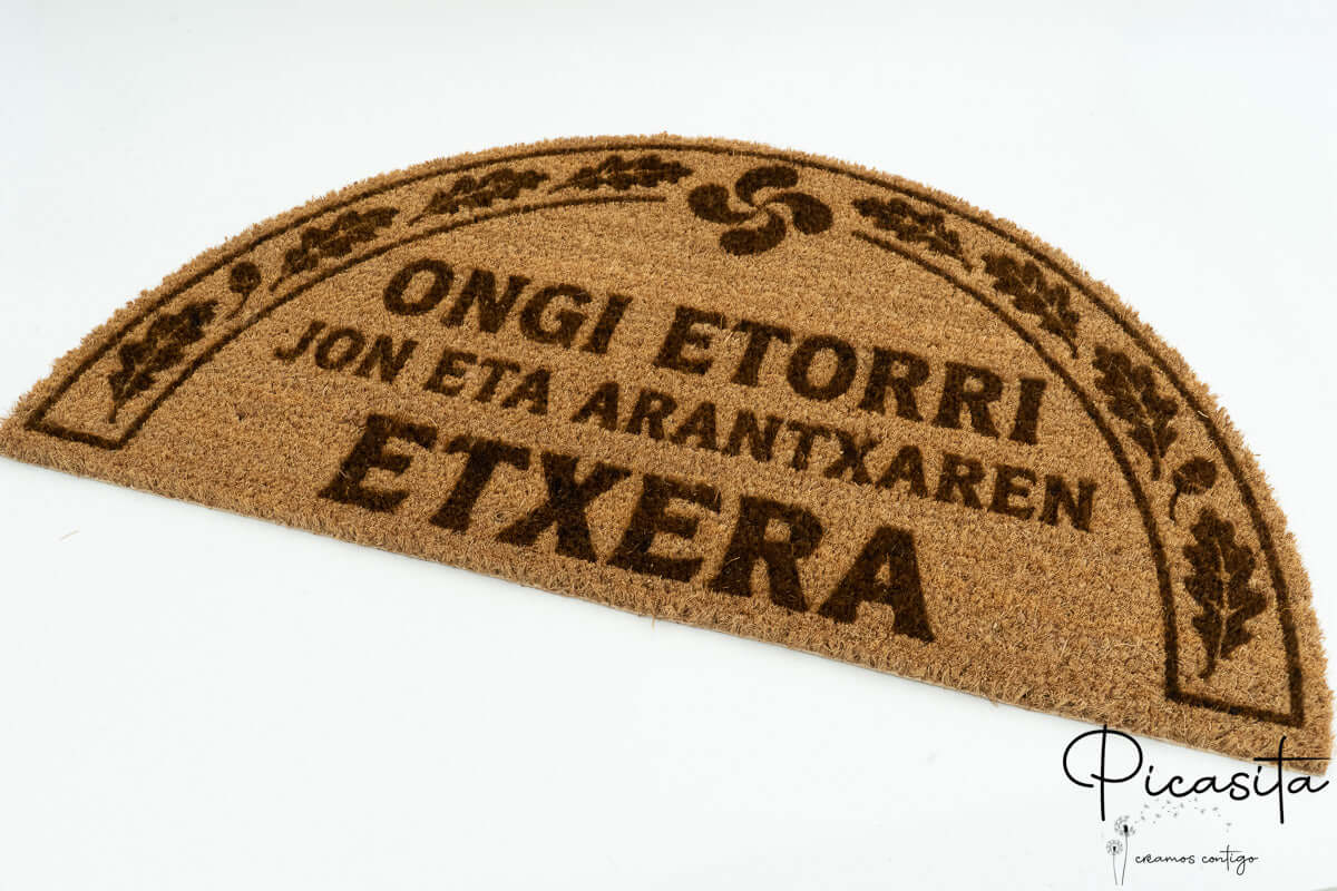 In Picasita, celebriamo la diversità linguistica e culturale. Sappiamo che non c'è niente di più caldo che essere accolti nella propria lingua. Per questo, siamo specializzati nella creazione di zerbino in galiziano, zerbino in catalano e zerbino in basco. Puoi personalizzare il tuo ingresso con un 'Benvidos', 'Benvinguts' o 'Ongi Etorri', o anche aggiungere i cognomi della famiglia o il nome della tua casa rurale.